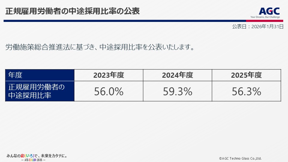 労働施策総合推進法に基づき、中途採用比率を公表します。