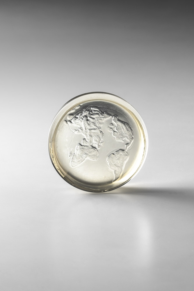 It is a type of glass casting in which clay or plaster is used to make a mold, and this is then used to form the basis for a mold made from fireproof plaster. This is filled with a mixture of various colored glass powders and glue, and fired in a kiln. After the mold has been slowly cooled down over a long period of time, the glass is removed and polished.