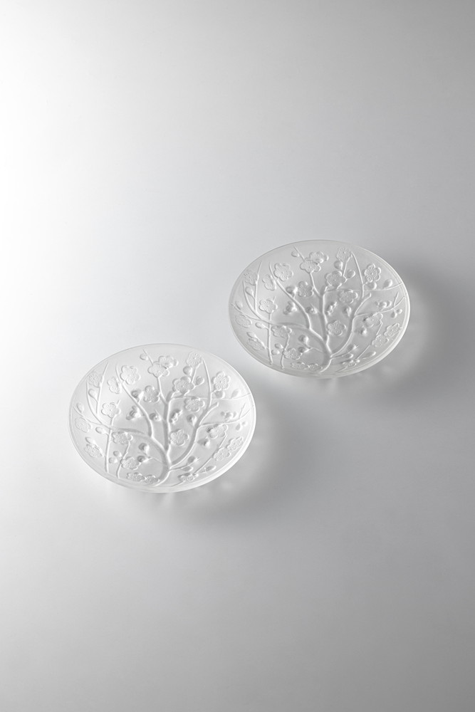 日本においてはアール・ヌーヴォー期にフランス留学していた洋画家 岡田三郎助(1869-1939)と陶磁彫刻(陶芸)家 沼田一雅(1873-1954)が、帰国後この技法を再現したいと考え、岩城硝子工藝部にその思いを託しました。同工藝部では、数年間に渡り苦心研究を重ね、独自の技法をもって日本で初めてその制作に成功しました。この功績は、ガラス工芸界において新しい扉を開いたと言われています。