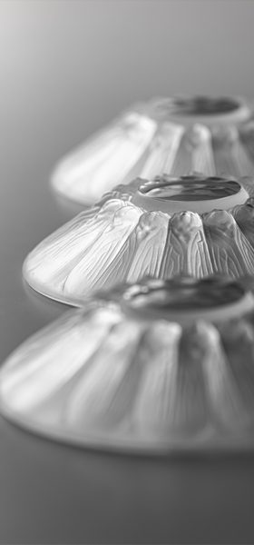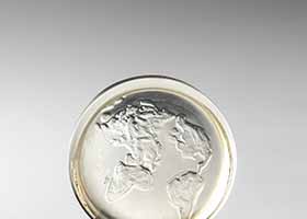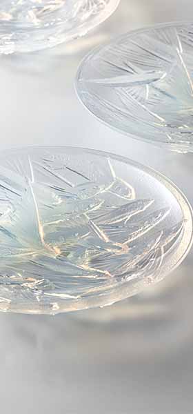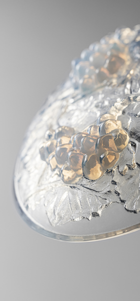 パート・ド・ヴェールの起源はかつて古代メソポタミア文明の栄えた時代にさかのぼります。型にガラスの粉やかけらを詰めて焼成する技法は、吹きガラスが発明されるローマ時代まで主流でしたが、ローマ帝国の滅亡とともに絶え、「幻の技法」と呼ばれています。