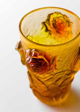 豊潤な色彩と自由な形状とを駆使することによって芸術的価値の高い作品を制作することができます。また、技術的に非常にデリケートであり、かつ困難な工程を伴うため、この技法で制作された作品はとても貴重でガラス工芸品の最高峰に値すると言われています。